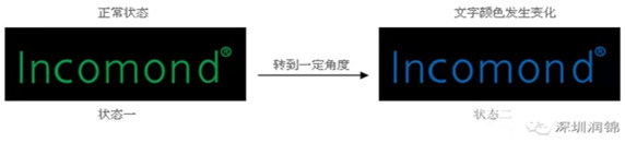 肉眼直接觀察防偽標(biāo)簽時,Incomond正視為綠色,轉(zhuǎn)動約50度視角之后,直接變?yōu)樗{色Incomond